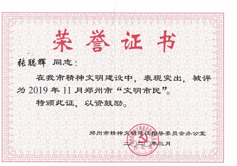 公司員工獲評鄭州市“文明市民”經(jīng)運營分公司推薦,公司上報,運營分公司車輛中心員工張聰輝被鄭州市文明辦評選為2019年11月鄭州市“文明市民”。 閱讀全文