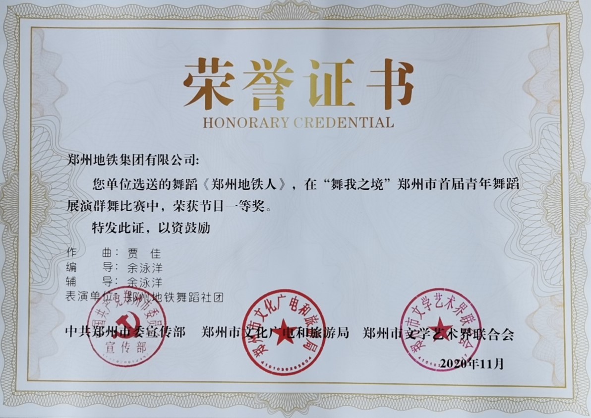 舞蹈《鄭州地鐵人》榮獲一等獎閱讀全文